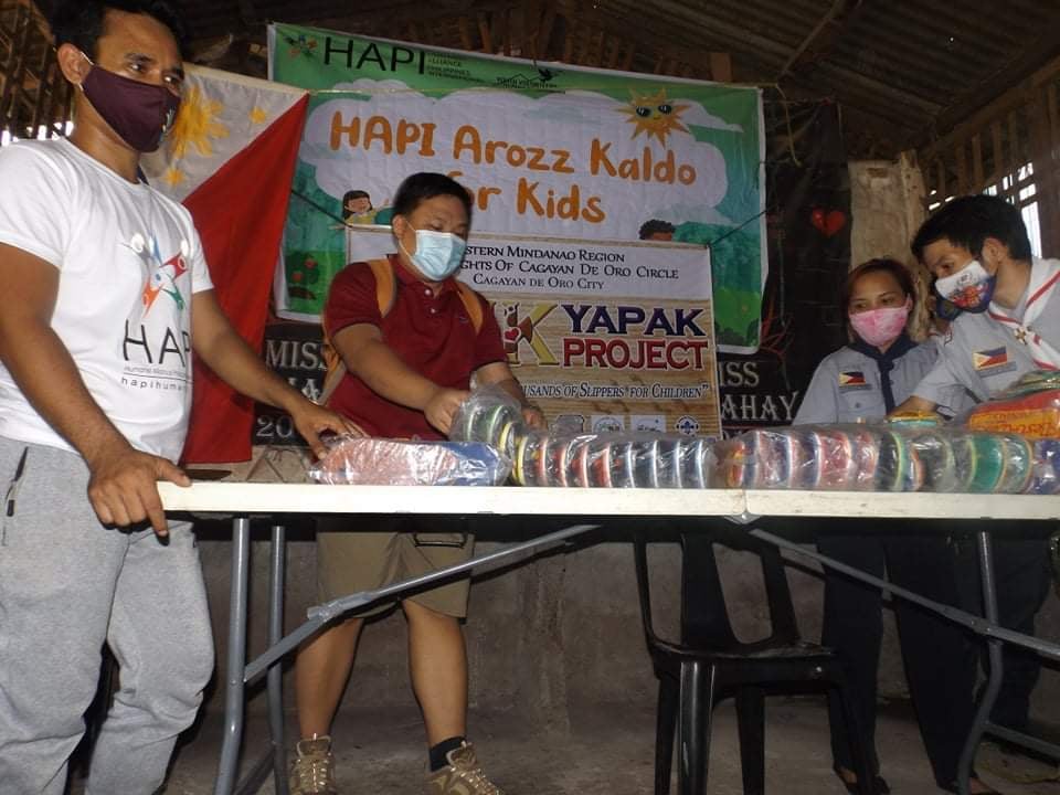 Together with its Partners Youth Volunteers for Peace and Development (YVPD) and Rovers Knights of Cagayan de Oro City, HAPI Northern Mindanao also implemented their 1K Yapak Project: A Thousand of Slippers for children which resulted in a good collaboration that benefited the children in the area. 120 pairs of slippers we’re given and even old mothers received their own pairs of slippers.
