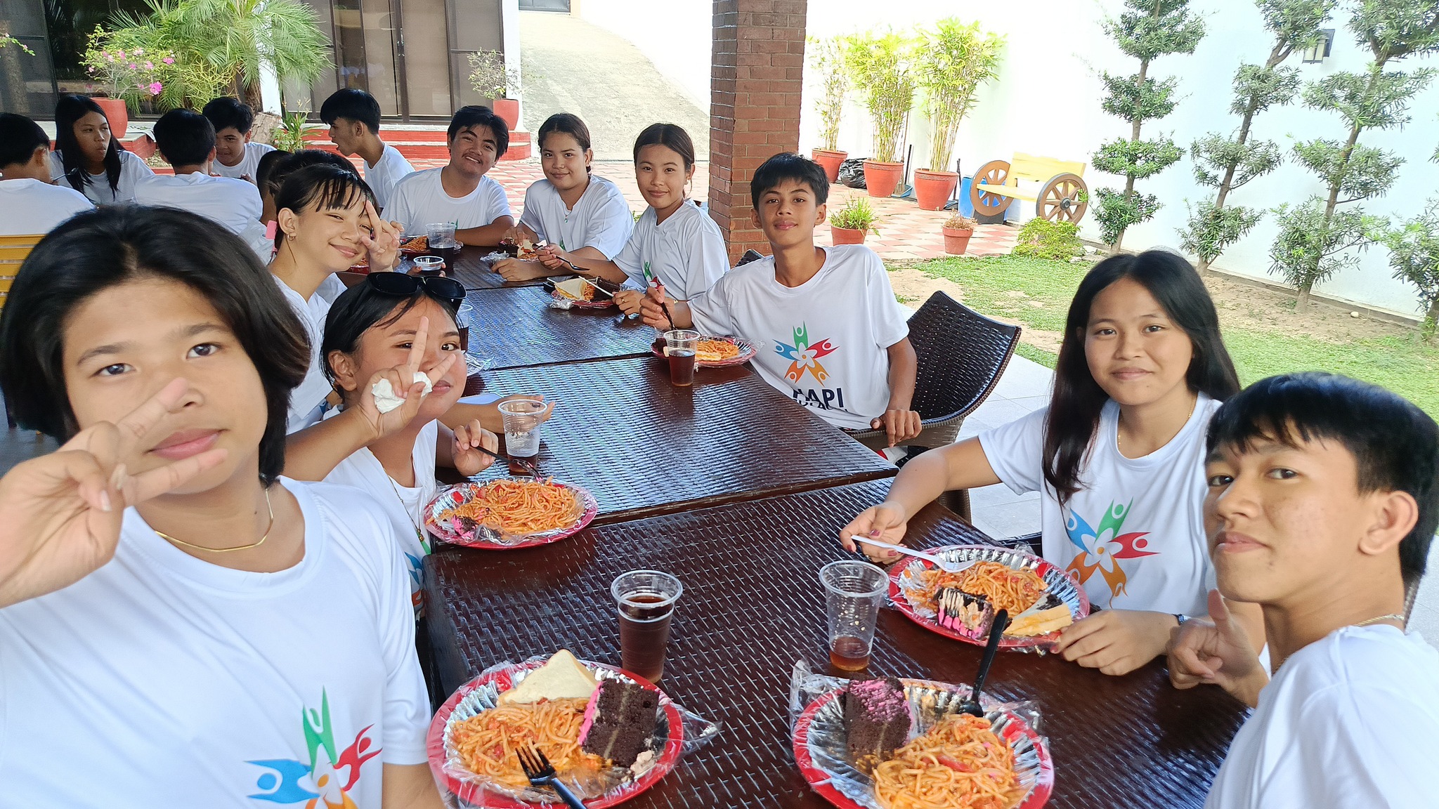 The celebration was full of laughter. The kids and youth members enjoyed a feast made up of dishes: spaghetti, bread, and cake—simple treats made meaningful by the collaboration behind them. They even had access to a swimming pool, turning the day into a truly memorable experience. Every part of the celebration came from their effort to celebrate, driven by the values and inspiration Ms. M had fostered in them. The event also embodied the core values of HAPI: humanism, education, and compassion.